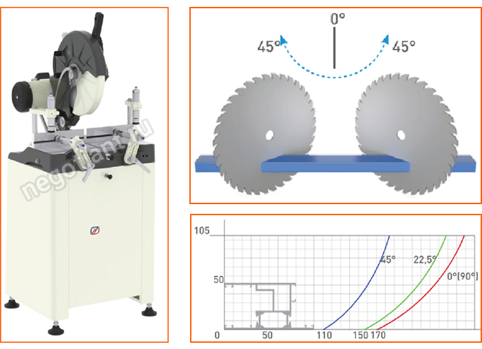 Станок предназначен для обрезки алюминиевых, пвх и деревянных профилей.