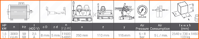 - Пневматические вертикальные и горизонтальные прижимы для надежной фиксации заготовки;