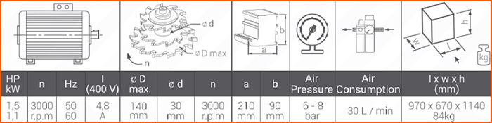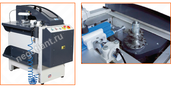 - Пневматические вертикальные и горизонтальные прижимы для надежной фиксации заготовки.
